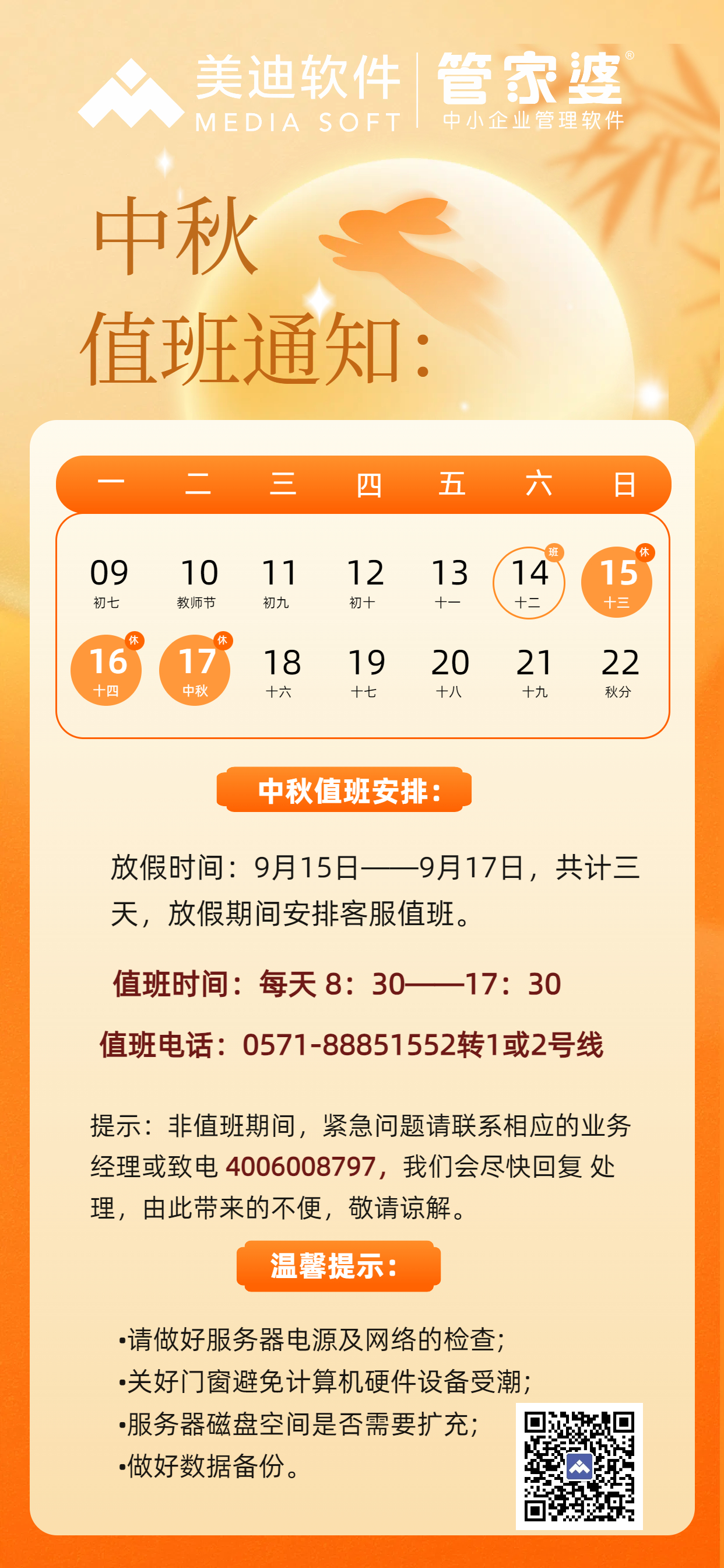 杭州 管家婆軟件 中秋節值班公告